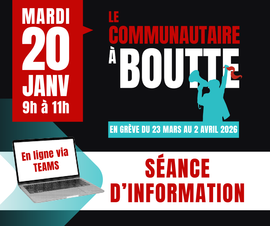 - Conditions de travail décentes pour les travailleuses et travailleurs du communautaire.